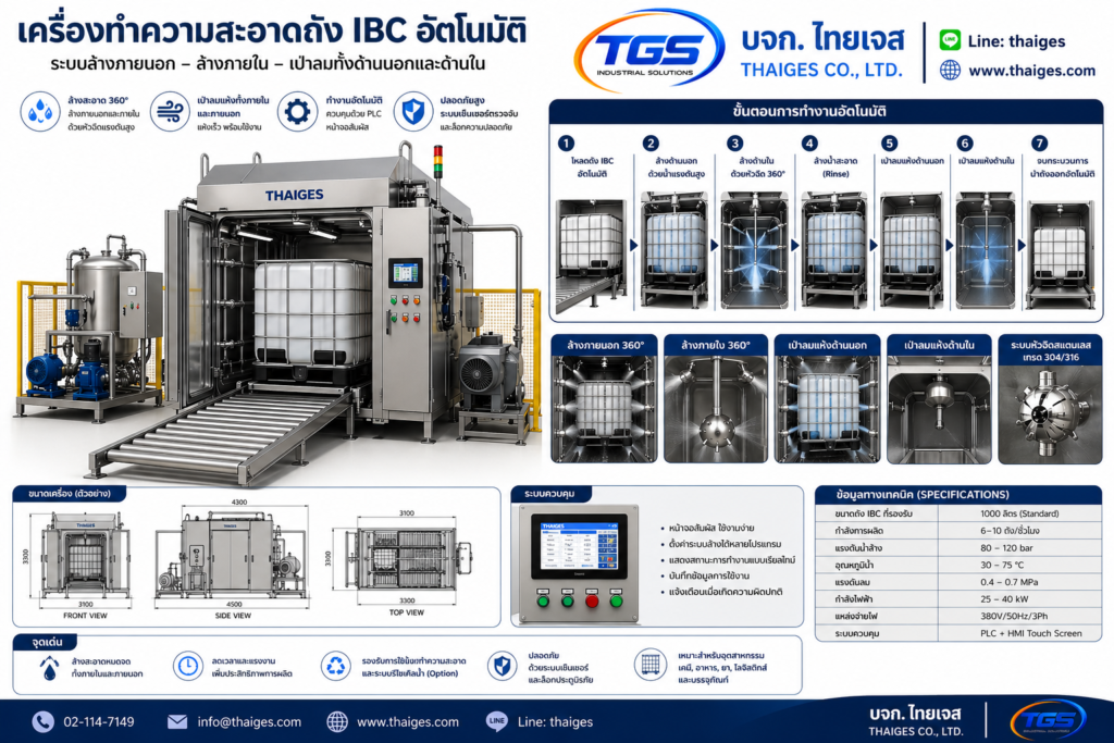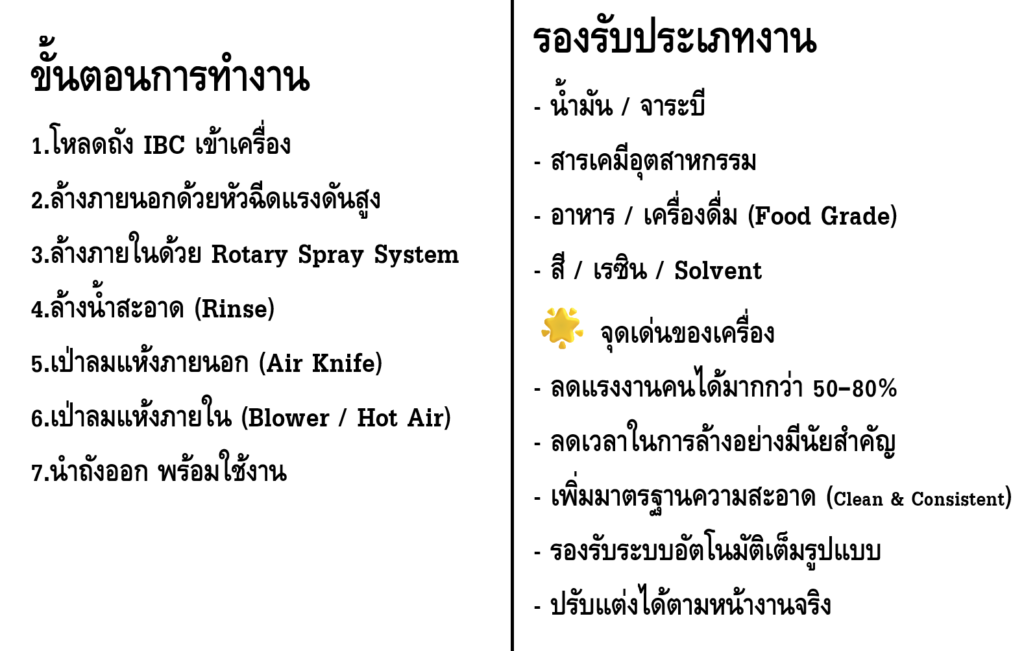 เครื่องล้างถัง IBC, IBC Cleaning Machine, เครื่องล้างถังอุตสาหกรรม, IBC Washer, Tank Cleaning System, เครื่องล้างถังเคมี, เครื่องล้างถังน้ำมัน
