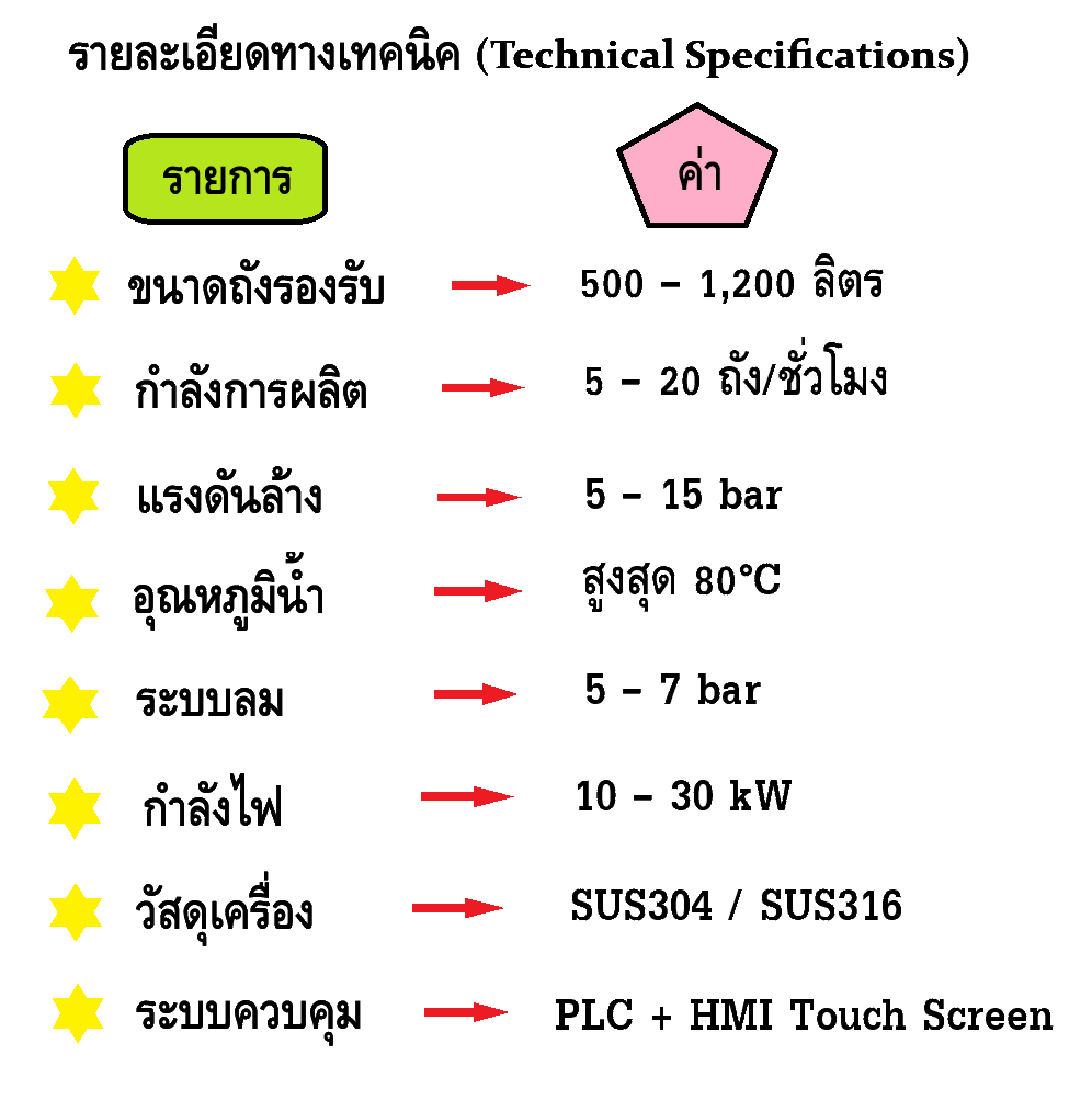 เครื่องล้างถัง IBC ออกแบบมาเพื่อทำความสะอาดทั้ง ภายในและภายนอกถัง พร้อมระบบ เป่าลมแห้งทั้งสองด้าน แบบอัตโนมัติ เหมาะสำหรับถังขนาด 500–1,200 ลิตร รองรับงานล้างคราบน้ำมัน สารเคมี อาหาร และของเหลวอุตสาหกรรม